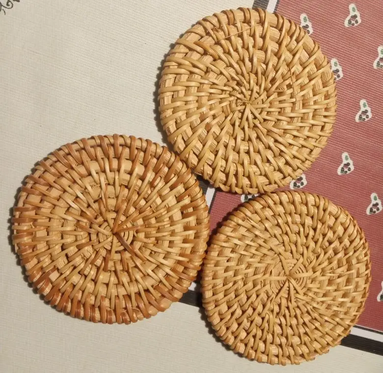 Handmade Round Natural Rattan Pad Coasters Table Placemats Bowl Mats Padding Mat Insulation Pad Kitchen Decoration Accessories