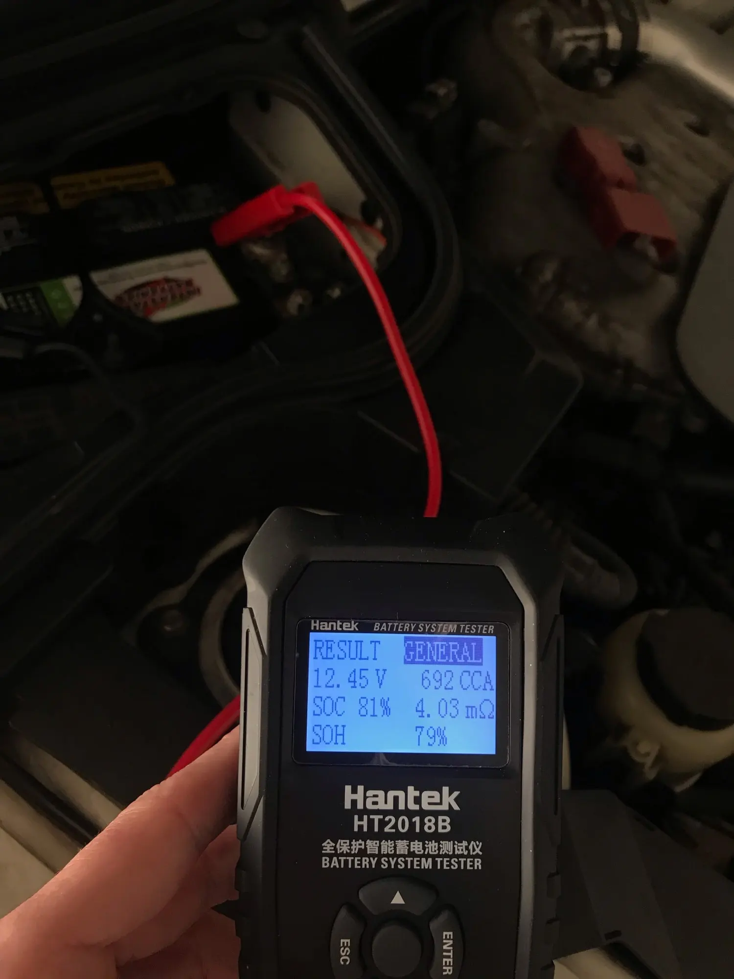 Push and hold ESC and Enter when it first powers on to change the language. Mine defaulted to Chinese but easy to change. Seems to work well, told me my old battery was in fact old and needs replaced.