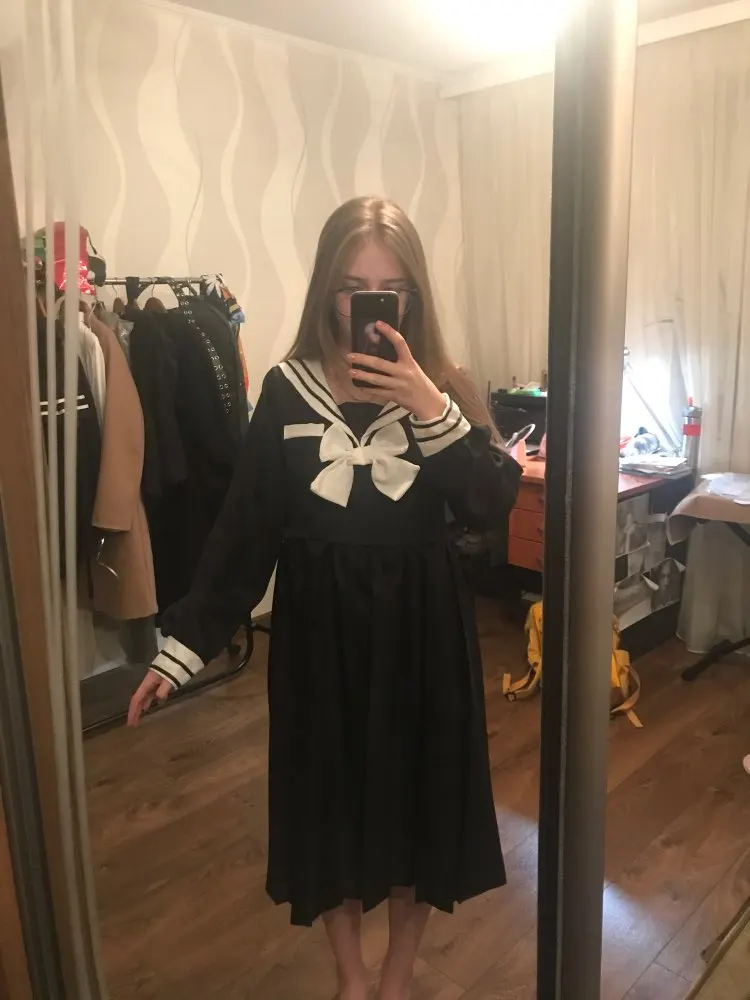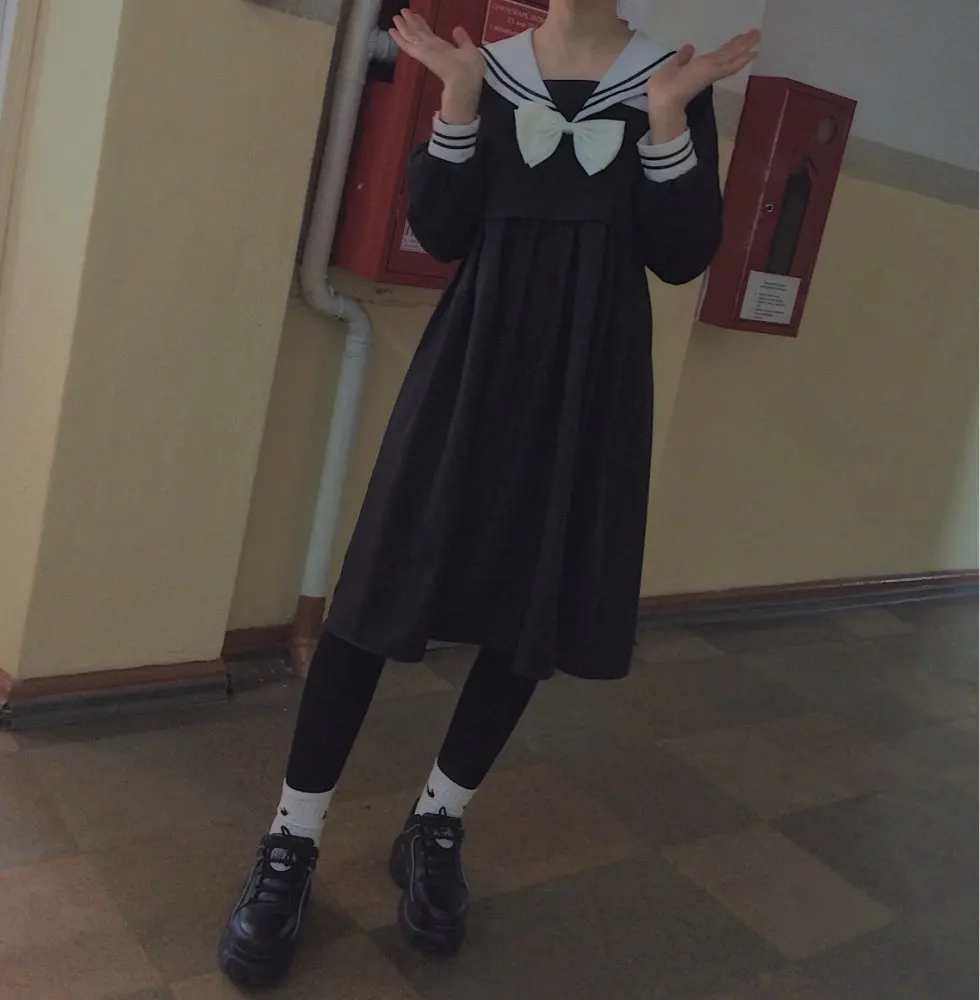 Harajuku Sailor Collar Navy Dress Japanese Lolita Sweet Bow Girl retro Cotton Kawaii Preppy Style Long Sleeve Dresses
