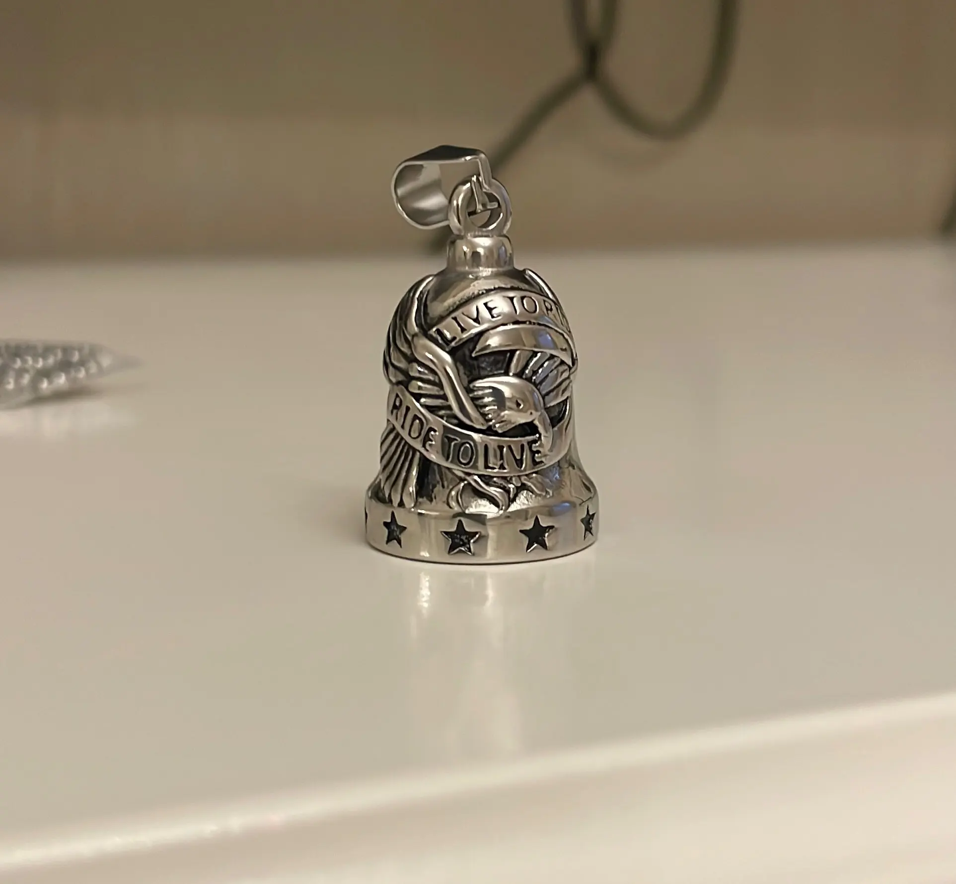 (Has bell sound) Live To Ride Eagle Motor Biker Bell Pendant Stainless Steel Skull Rose Lady Rider Pendant 496B