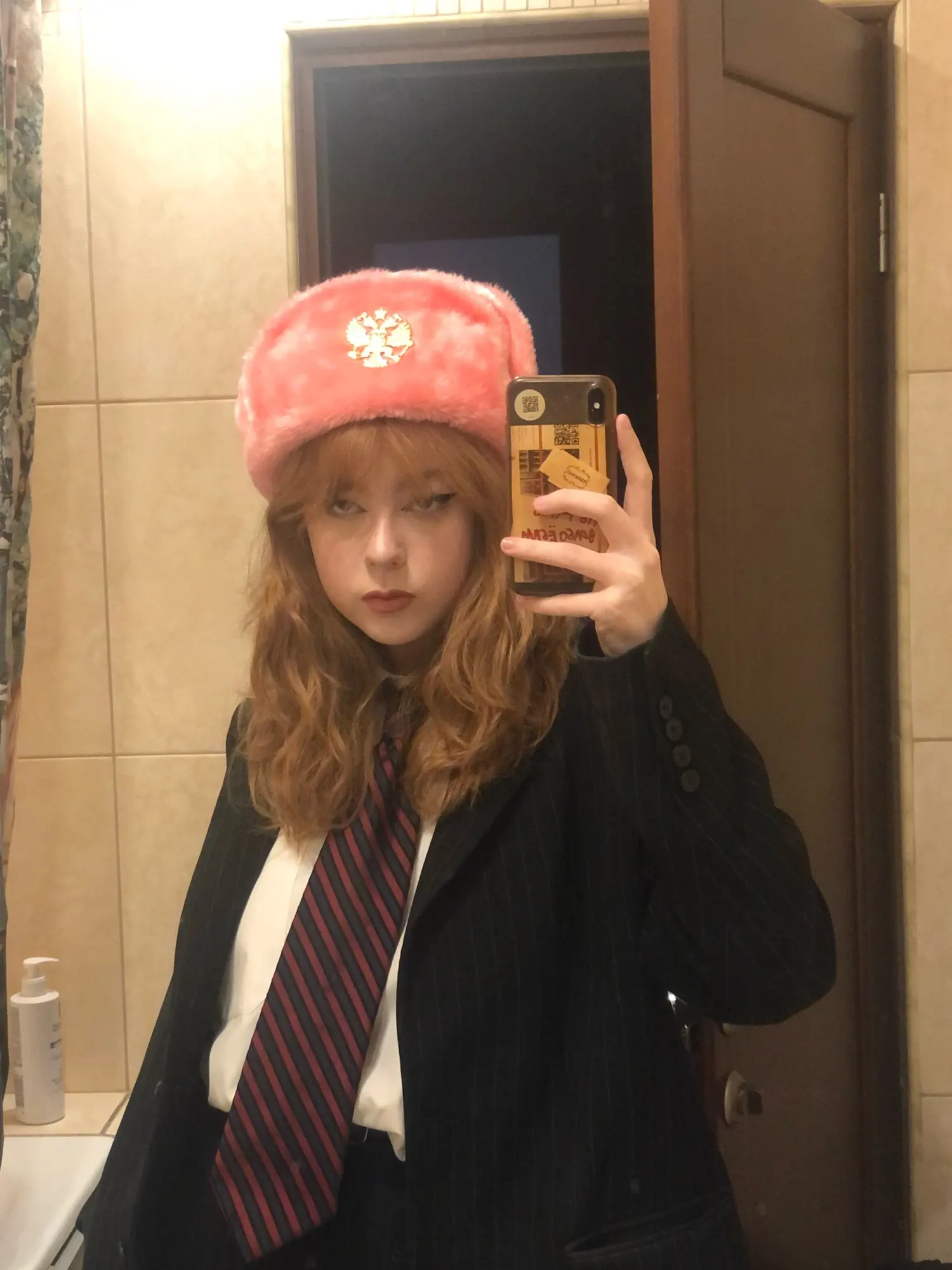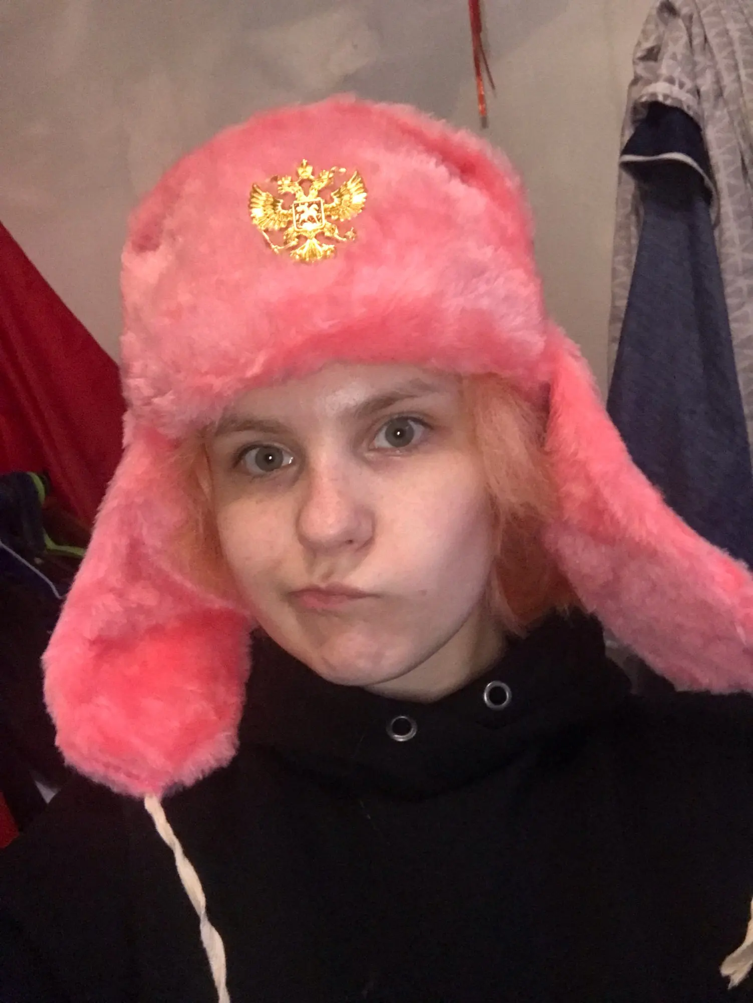 Hat cap fur artificial fur pink in ass. size.
