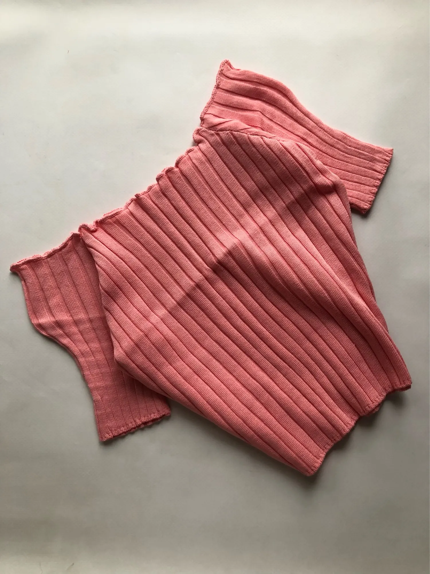 Heliar Ruffle Hem Tees Women Short Sleeve Knit Crop Top Off Shoulder Flexible T-shirts Female Solid Streetwear Tops Summer