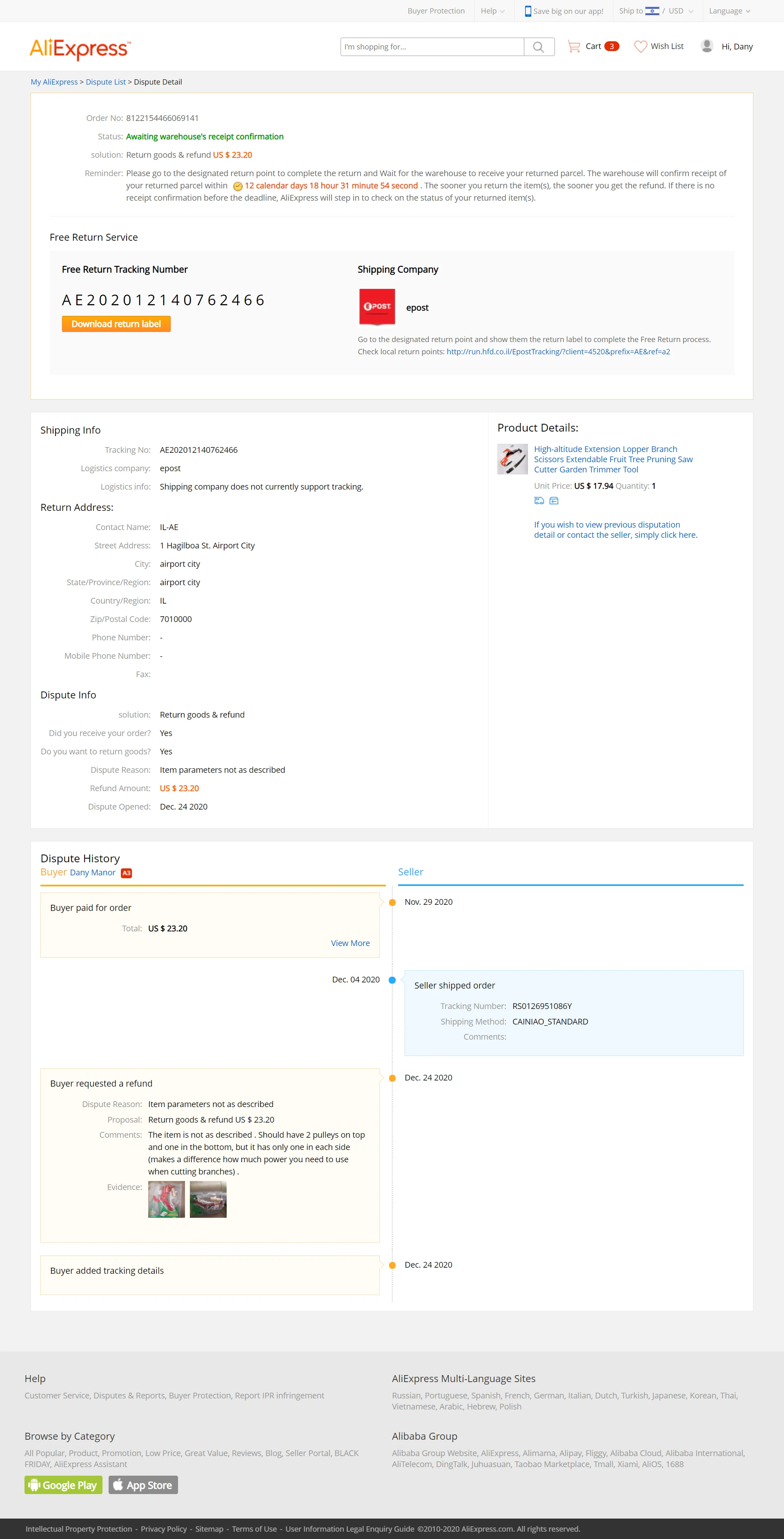 I sent the item back on the 27 December 2020. It wasn't as described . Please refund me.