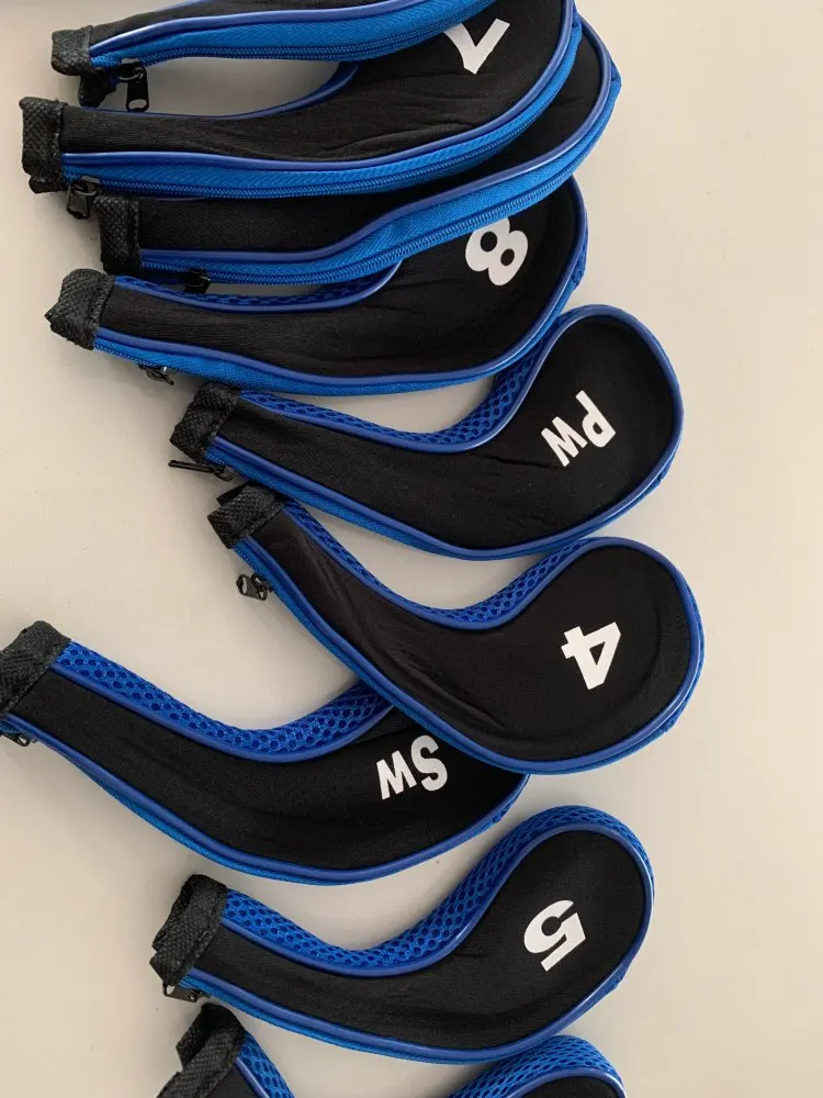 High Quality 10Pcs Rubber Neoprene Golf Head Cover Golf Club Iron Putter Protect Set Number Printed with Zipper Long Neck