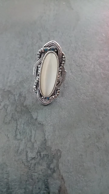nice lovely ring. a little tight...if buying get one size bigger. otherwise beautiful. really like it.