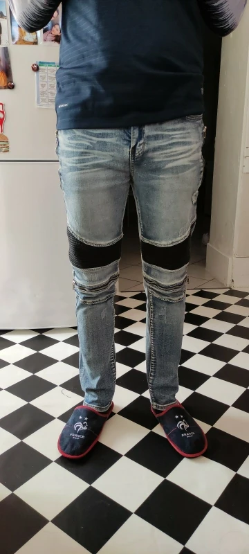High-quality Men Fashion Distressed Ripped Skinny Jeans Slim Fit Motorcycle Moto Biker Jeans Elastic Denim Hip hop Punk Jeans
