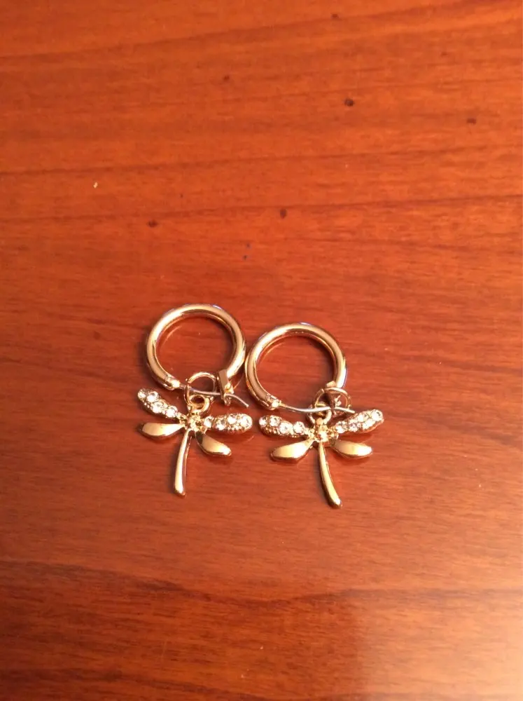 High Quality Small Cute Hoop Earrings Gold Color Small dragonfly Pendant Earrings for Women and Girl Best Gift