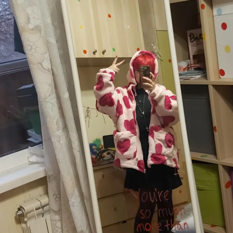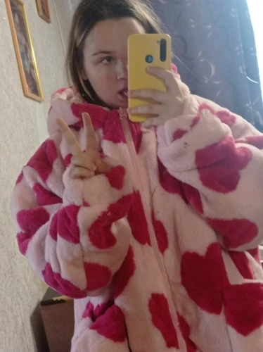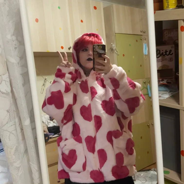 Hip Hop Flannel Parkas Lambswool Hoodie Jackets Women Streetwear Full Print Heart Winter Harajuku Sherpa Zipper Coat Oversize