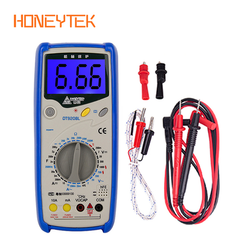 HONEYTEK DT9208 Multimeter Digital Professional Capacitor Tester AC/DC Voltage Current Tester Digital Multimeter Temperature