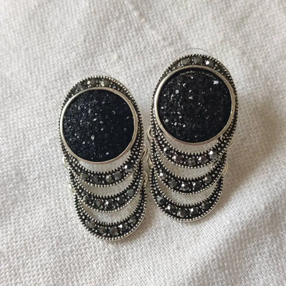 Hot 2017 Fashion Black Broken Stone Accessories Earring For Women Bohemia Silver Plated Jewelry Engagement Earrings