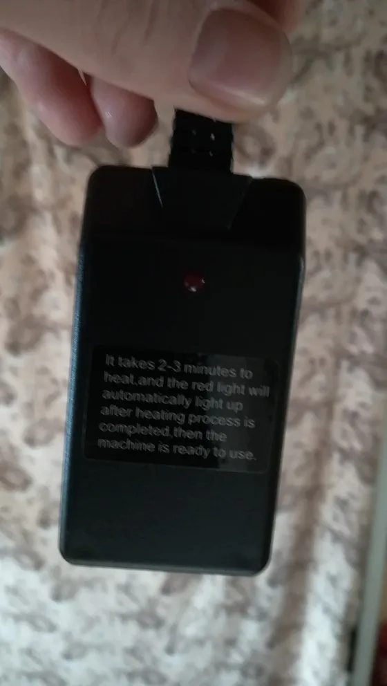 Produces a lot of smoke with little liquid. Takes a few minutes to get up to temperature, but then stays ready indefinitely and can be used almost continuously. It is a shame that the LEDs only turn on when the smoke is activated. Has proper safety features. The seller is helpful and quick to respond.