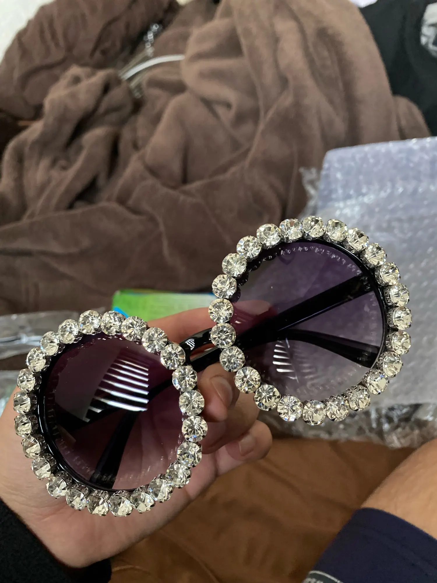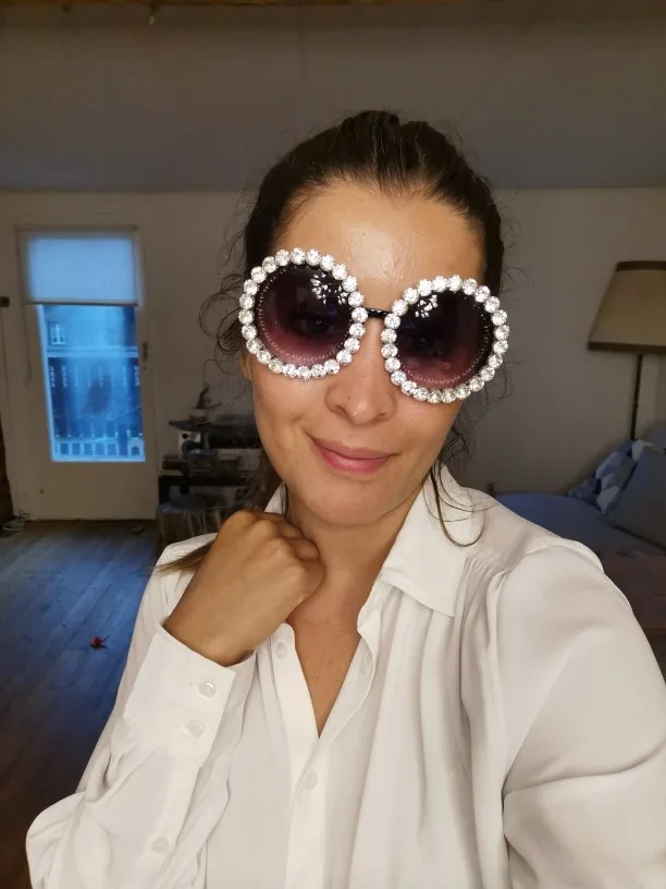 Hot sales custom logo private label fashion round luxury shades bling diamond sun glasses crystal women sunglasses trendy