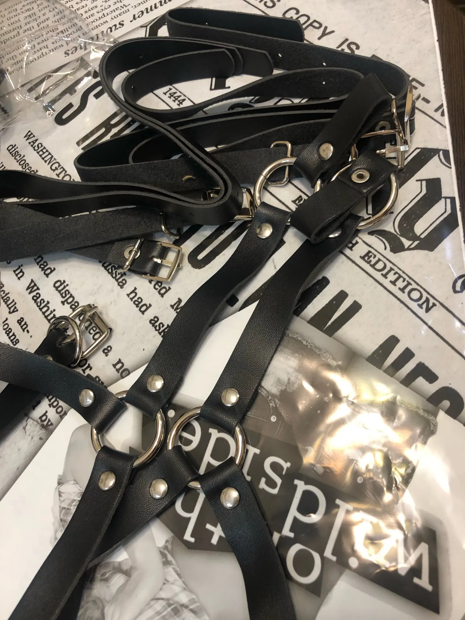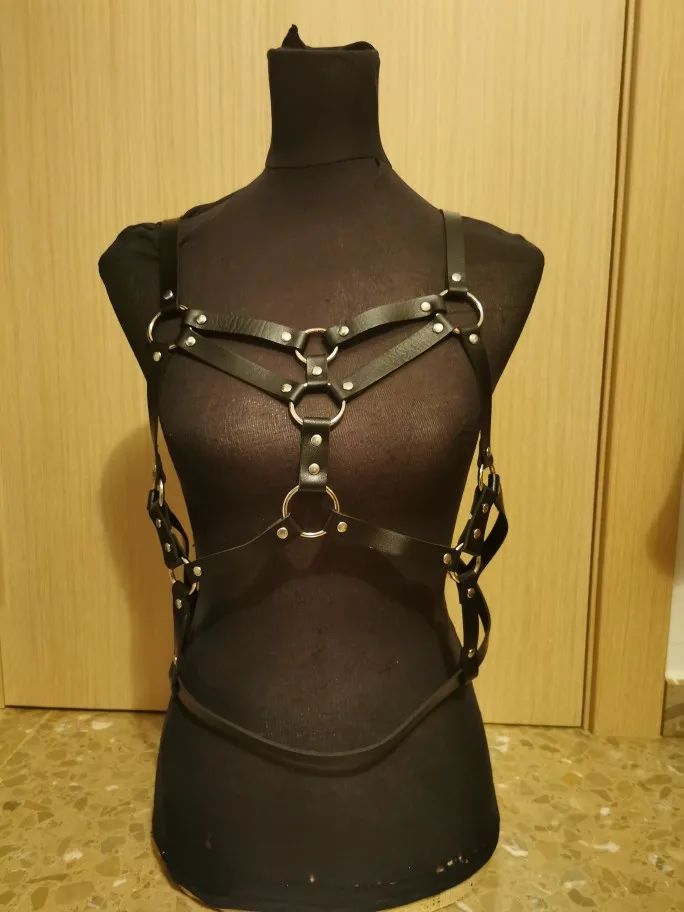 Hot Selling Black Leather Garter Two Piece Set Sexy Harness Bra Cage Adjustable Suspenders Belts Metal Rivet Clubwear For Lady