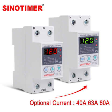 Household 40A 63A 80A Adjustable Surge Protector Over Under Voltage Protector Relay 110V 120V Automatic Transfer Switch