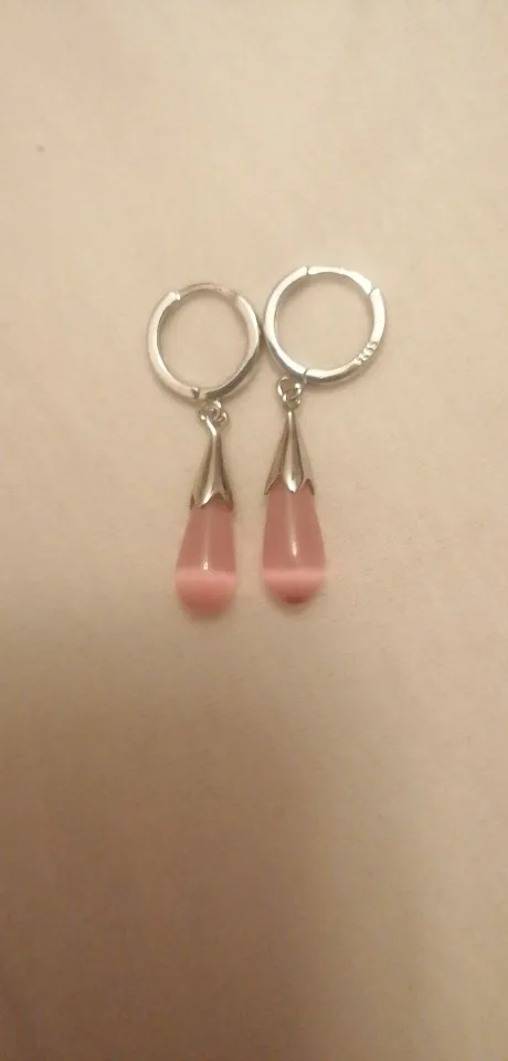 HuiSept Fashion 925 Silver Earrings Jewelry Water Drop Pink Cat Eye Stone Long Style Ornaments Earrings for Female Wedding Party