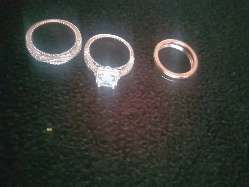 Huitan Luxury Princess Cut Cubic Zircon Bridal Marriage Rings 3Pc/Set Elegant Accessories Brilliant Women Wedding Trendy Jewelry