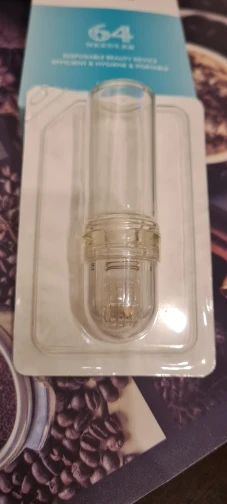 Really like the serum bottle on this I put hyaluronic acid an vitamin c I used it lying down as the serum dispenses easily on my face at night needles are sharp an good quality woke up with plump skin thanks