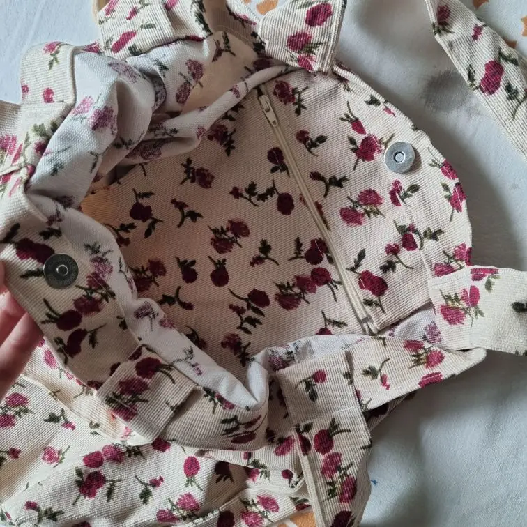 Hylhexyr ins Casual Totes Female Corduroy Shoulder Cloth Bag Rose Flower Printing Fashion Messenger Bag Large Capacity Handbag