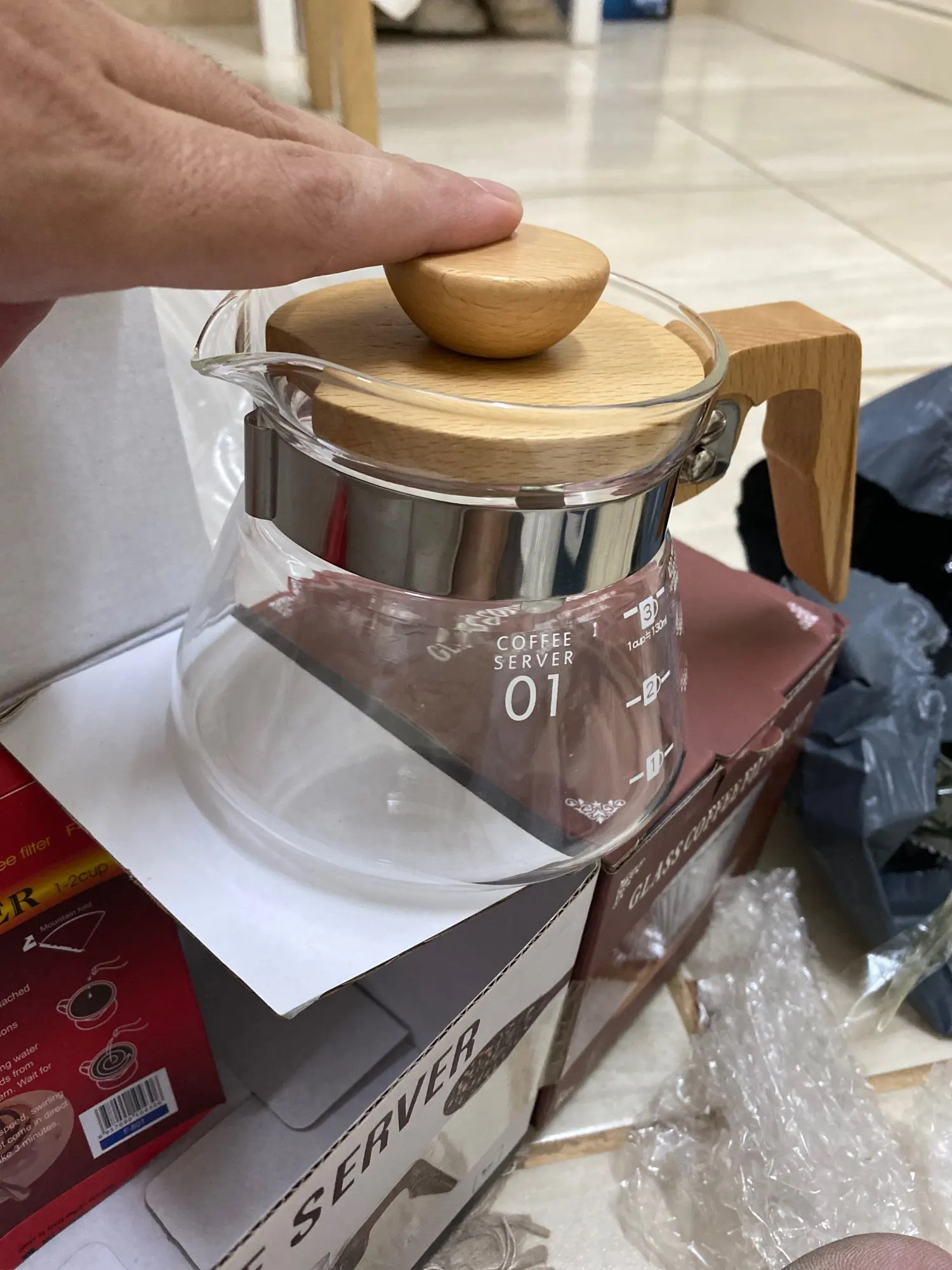 HZSH V60 Three-piece Set Coffee V60 Set Coffee Dripper Glass Server Coffee Pot Coffee Kettle Brewer Barista Percolator Maker
