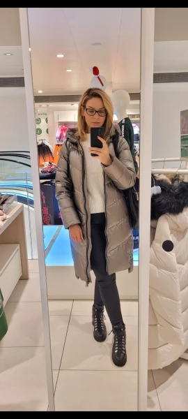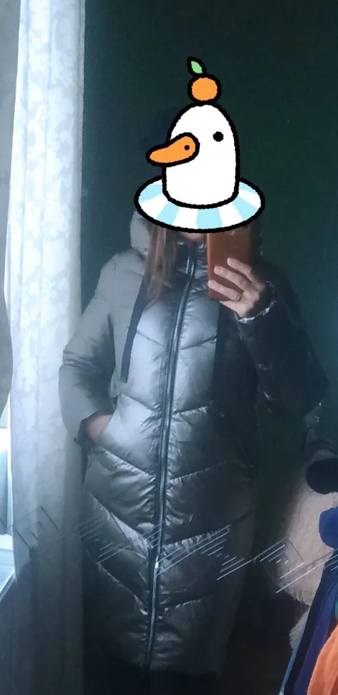 The jacket, as in the photo, came in a vacuum package, so it was very memorable, I had to look for who has a steam system, because I was afraid to iron with a steam iron so that the insulation inside would not become thinner after ironing. The size took 48, at the sizes 98 70 98, in a breast the jacket is good, and in hips and a waist is very wide, it is necessary to narrow.