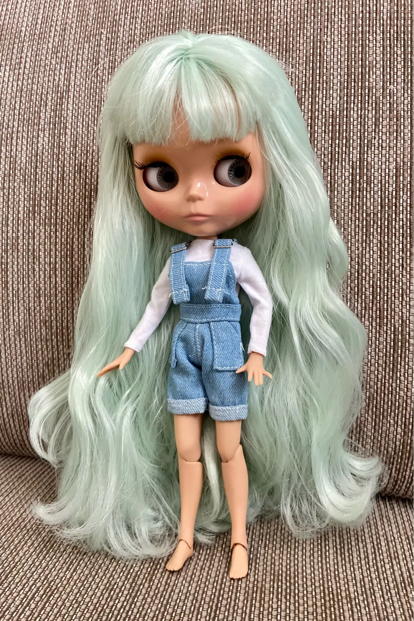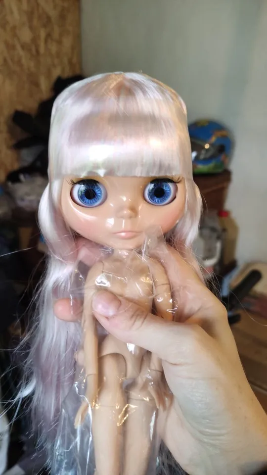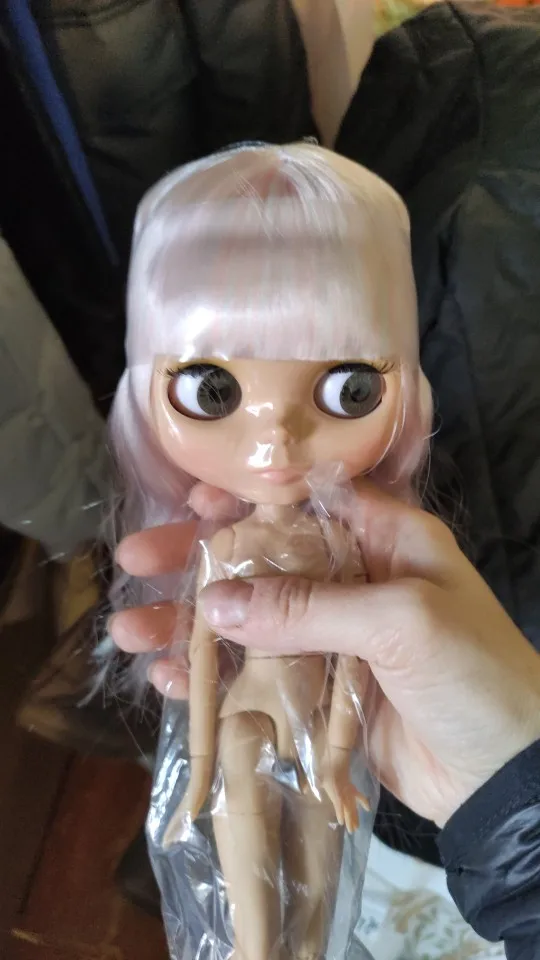 Took awhile to get through the postal service, but super cute in person! I bought her thinking I would repaint her face right away, but she's actually very cute as is so I won't rush. Doll is matte everywhere and skin tone is nice and even. Hair is full and soft and eye mechanism works well. The only issue is that her leg joints are slightly loose -- they buckle without even applying any pressure, but since she's probably going to mostly be sitting on a shelf I can live with that. Otherwise very good purchase, will buy another.