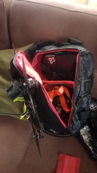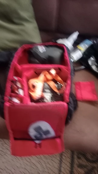 A lot of space, and a bunch of spacers you can place wherever you want. The material looks very good and it includes a rainproof bag wich i didn't knew and it comes very handy! Really good product for the price! the shipping was on time, I really recommend that product.