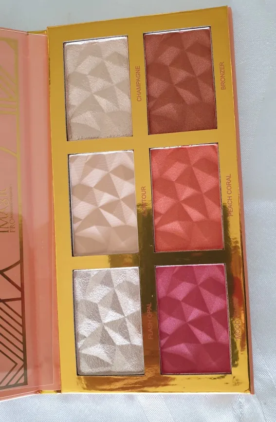 This makeup is so pigmented, and the shades match the description ... the highlighters from the upper row are like liquid metal, you need just a little ... blush and bronzer from the lower are also very pigmented, they blend finely ... personally I I don't like the shades, Peach and Bronzer have a just a little too much yellow pigment for my taste, but great for whom it suits ... the seller packed everything very well and you really don't have to worry about that, seller sent it by OK shipping, I received it about 7 weeks after orders, which is perfectly OK for this pandemic ...