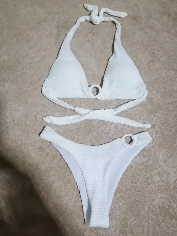 INGAGA Ribbed Bikinis Women's Swimsuits Push Up Swimwear Sexy Ring Bathing Suits Halter Strap Biquini 2022 New White Bikini Set