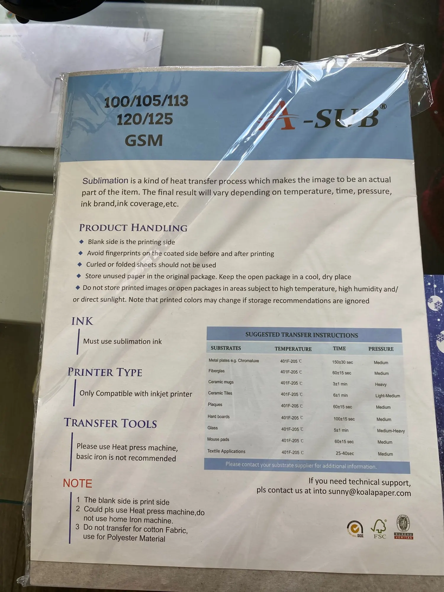 Inkjet Sublimation Heat Transfer Paper 100sheets A4 105g for Any Inkjet Printer with Sublimation Ink 100 Sheets Letter Size