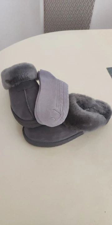 The leather part (the upper) is very very nice. The bottom of the shoe is a thick polymer material. It has a slight odor that I hope goes away after airing out the shoes for a few days. The fur is somewhat coarse, not as soft as I was hoping. The fur makes the inside of the shoe feel smaller than normal and it is a little difficult to push the foot in. The fit is snug. The shoes are warm.