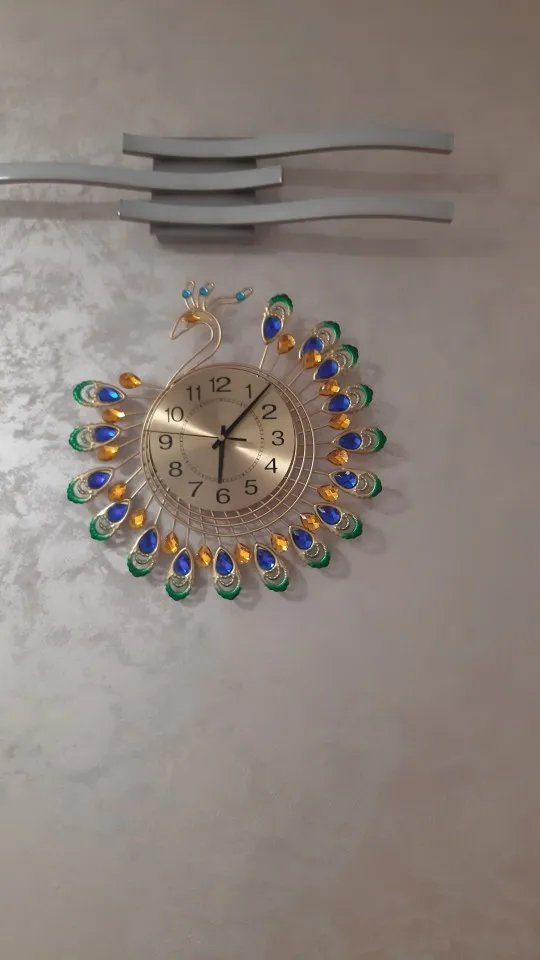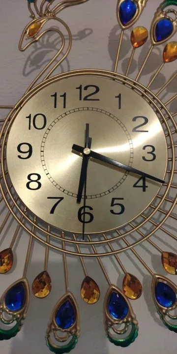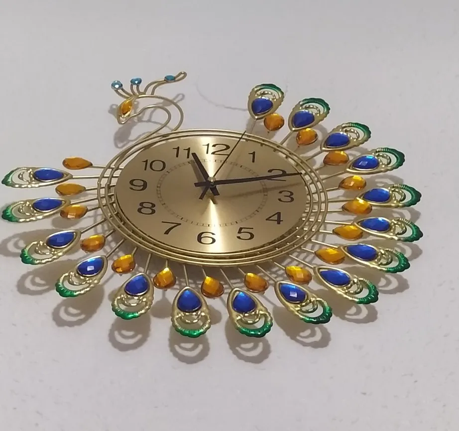 Iron Modern Wall Clock Large 3D Peacock Shape Non Ticking Silent Clock For Living Room Decor Non-Ticking Kitchen Wall Clocks