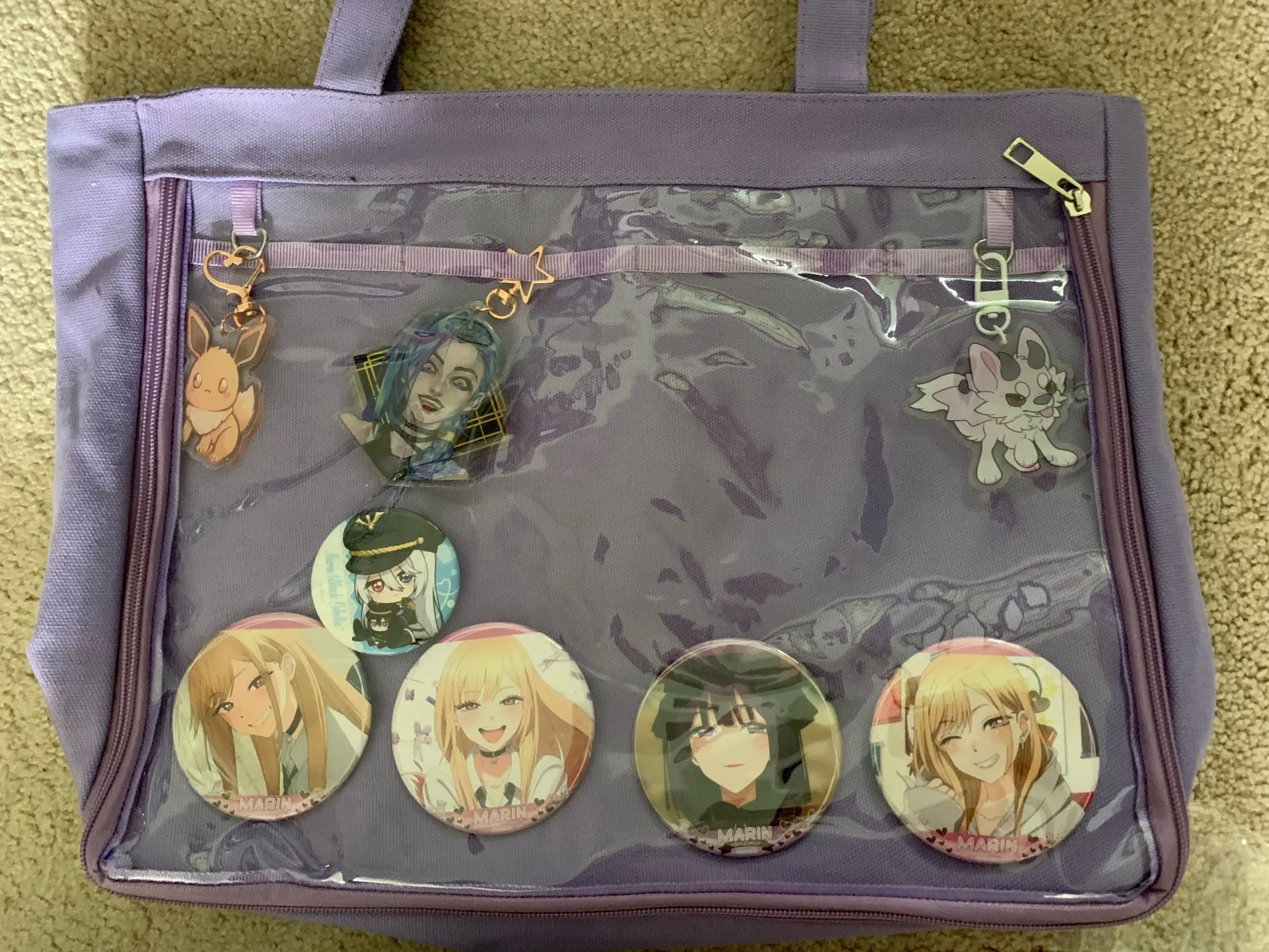 the outer layer of the bag is super thick canvas like material. very well made. good quality. good size. plastic zippers.