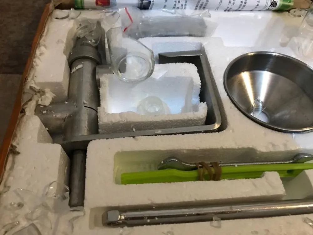 Due to the loose fit, the crank handle strikes the base of the press and the tabletop, which it sits on. The hopper is too loose and falls off all by itself when grains poured in by a handful. Wick is too loose in the lamp's cap. I am not certain if the item is of proper quality, because the cake just spins inside the press without engaging in the longitudinal slots. As a result, it does not get expelled through the holes in the end cap and gets burnt into solid mass inside. The welds are of very low quality, lots of undercut and porosity. Overall, this looks and feels like a poor quality, counterfeit item. On the positive side, it was shipped DHL and arrived in 3 days.