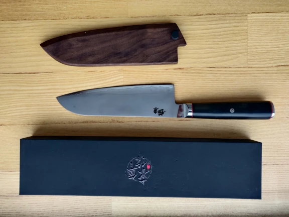 Review after some time. Very nice knife for price, G10 handle is robust without sharp edges and with good feel. Knife is well balanced, perfect for pinch grip. AUS10 steel is well heat threated without microchiping (tested under microscope). Very good edge retention (for price). Fine grind and good sharpnes from factory. Matte finish of the blade is very good for food realease. I foud only few drowbacks, blade could be thiner but i its not that chritical and added steath start to scratch the blade, its better to use diferent storage splution. For reference I bout diferent knife from other manufacturer as gift for friend from 10cr15comov "VG10" steel. Same price but box doesnt look that good, less items included and grind of edge was uneven and rough with lots of micro chiping out of the box. So I recomed Dongsun.