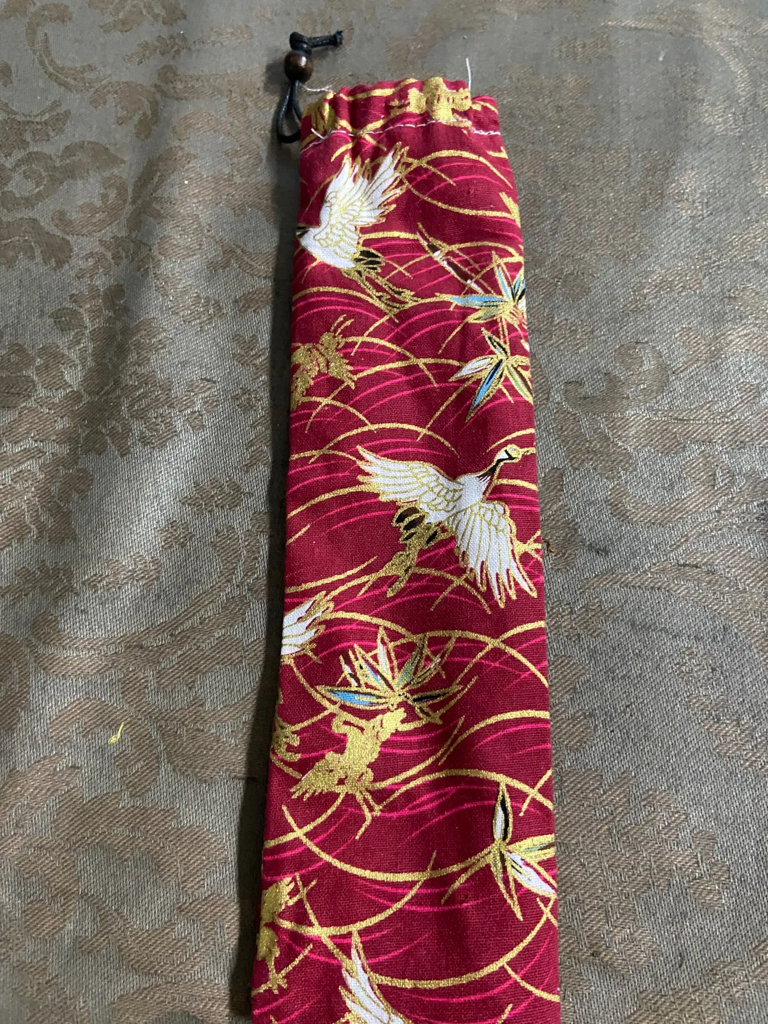 Japan Style Cutlery Bag Reusable Travel Drawstring Pouch for Kitchen Tableware Fork, Spoon, Bamboo Chopsticks, Cleaning Brush