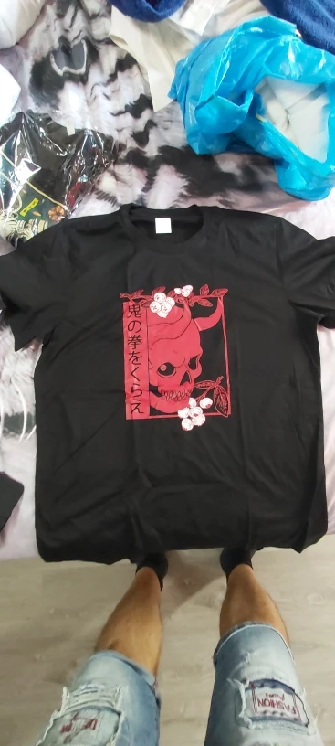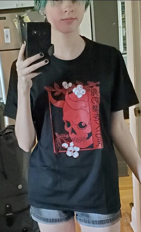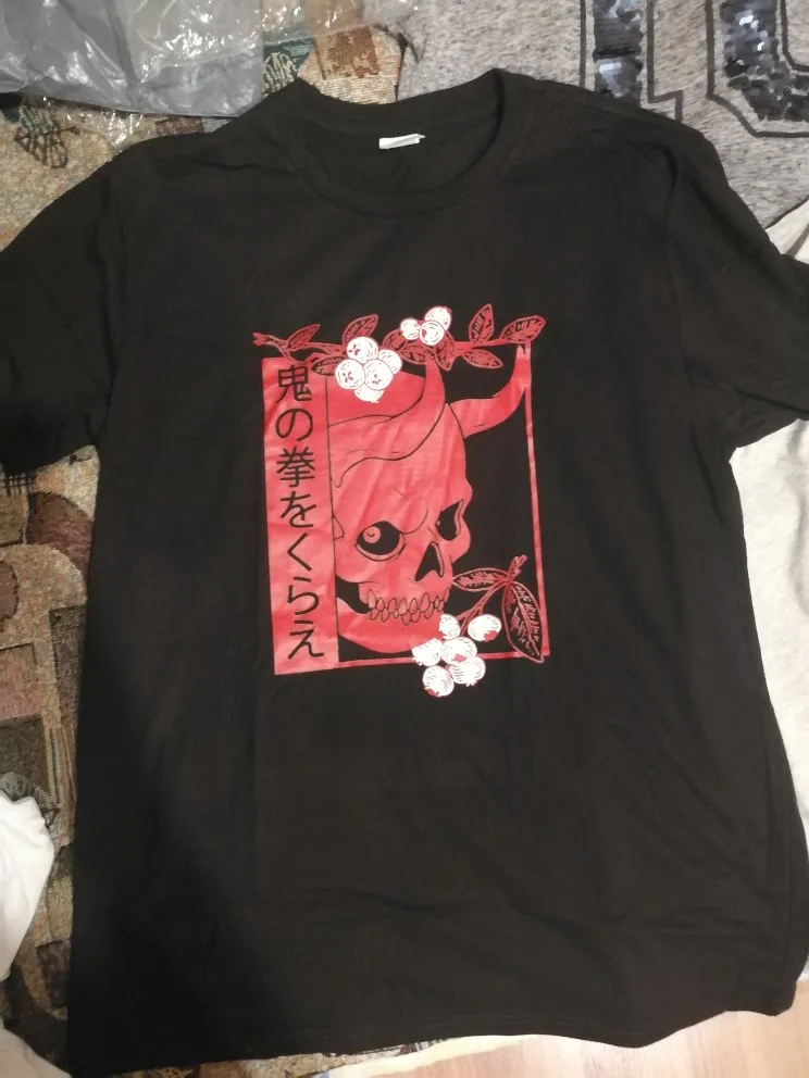 Japanese Demon Art Face Skull Devil Oni Harajuku Aesthetic T-Shirt Summer Men Cotton Tshirt Hip Hop Tees Harajuku Streetwear