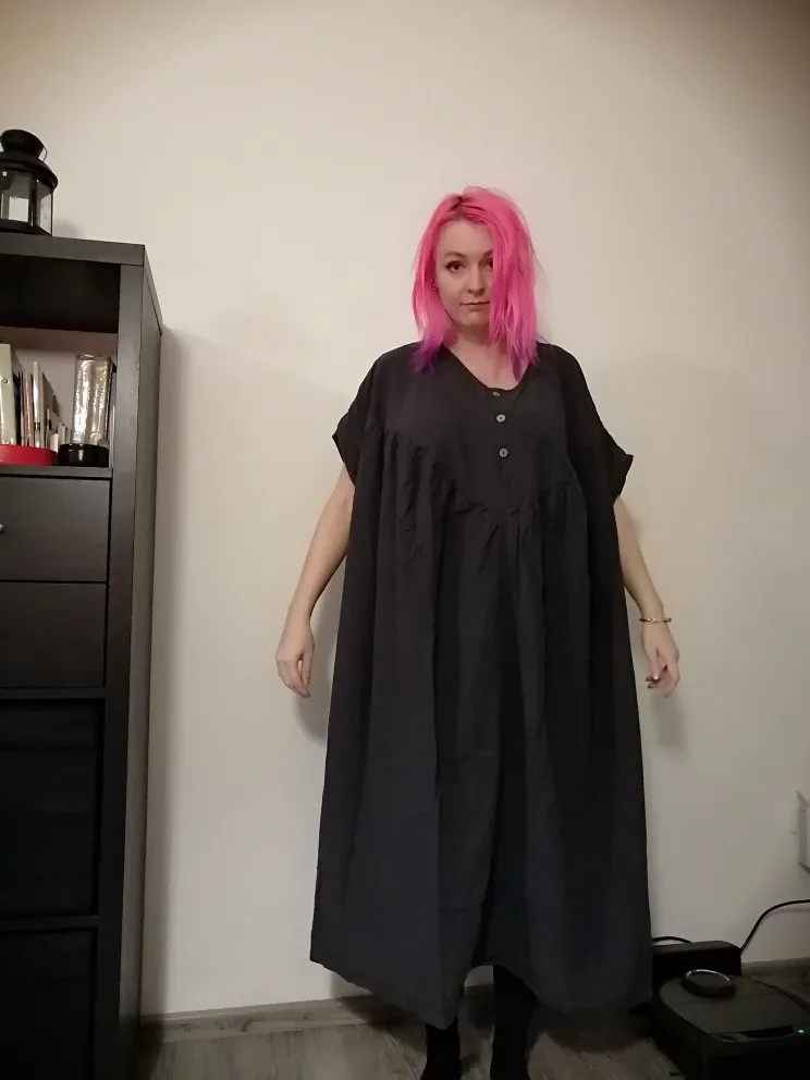 I am not a tiny skinny Chinese women like the photo. I'm 164cm tall and weight 64kg. Dress are huge in width, they add me 30kg. But they are short below the knees and the sleeves are also shorter. The material is very good and pleasant. But it's just not the same dress as in the photo. I wouldn't buy them again.