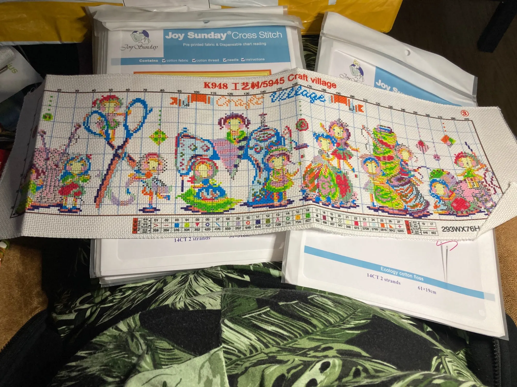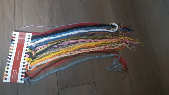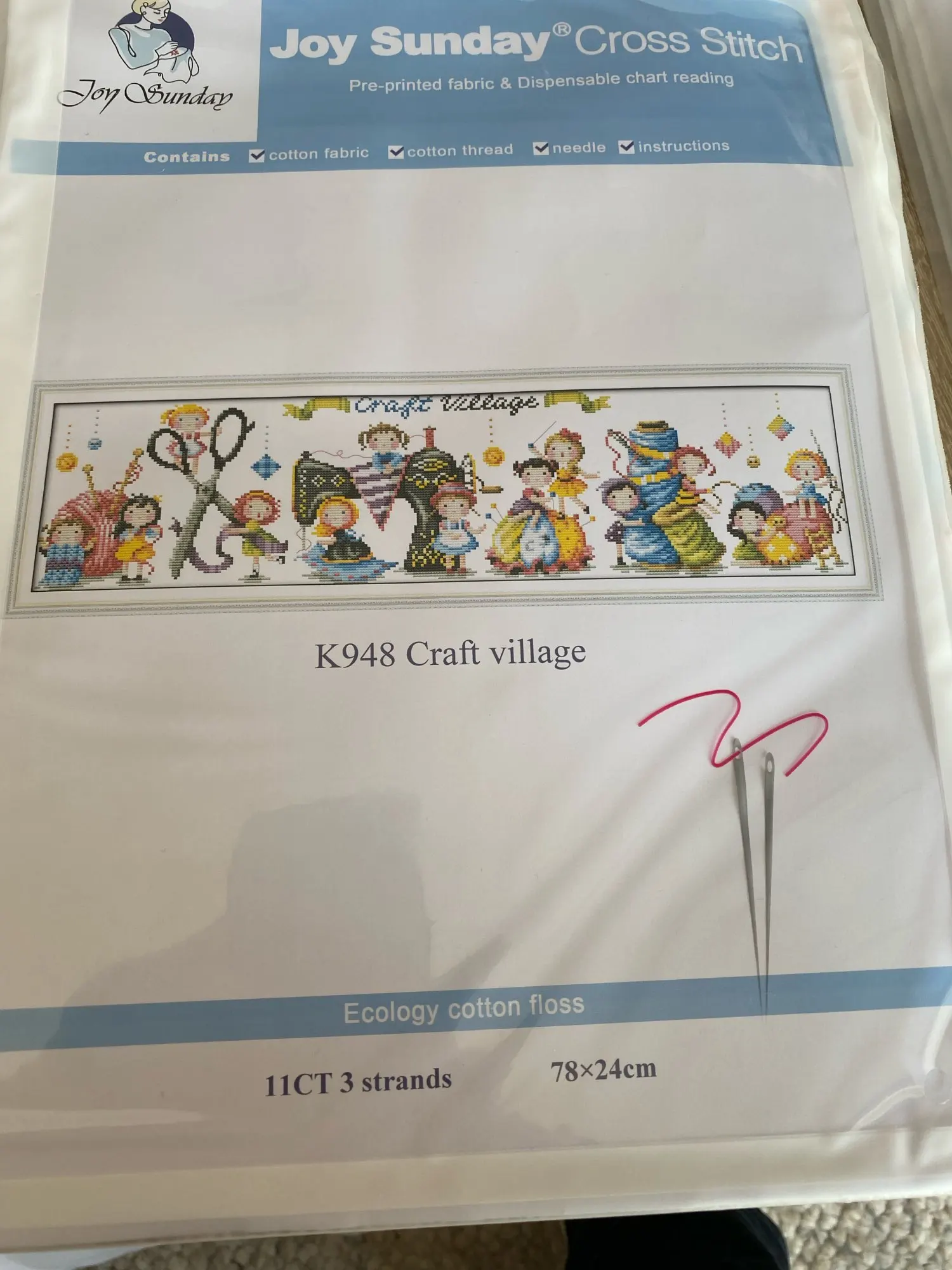 Seller shipped on 9 Nov, item arrived on 25 Nov. Cross stitch kit came with paper pattern, threads, 2 needles and aida cloth.