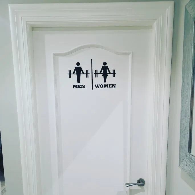 JOYRESIDE Men Women Weight Unisex Restroom Bathroom Toilet Door Wall Decal Vinyl Sticker Funny Decor Muscles Gym Workout XY095