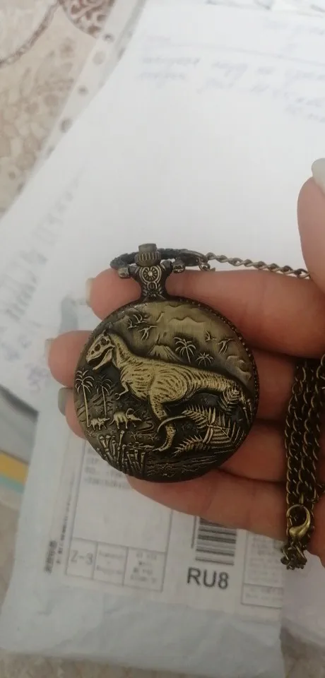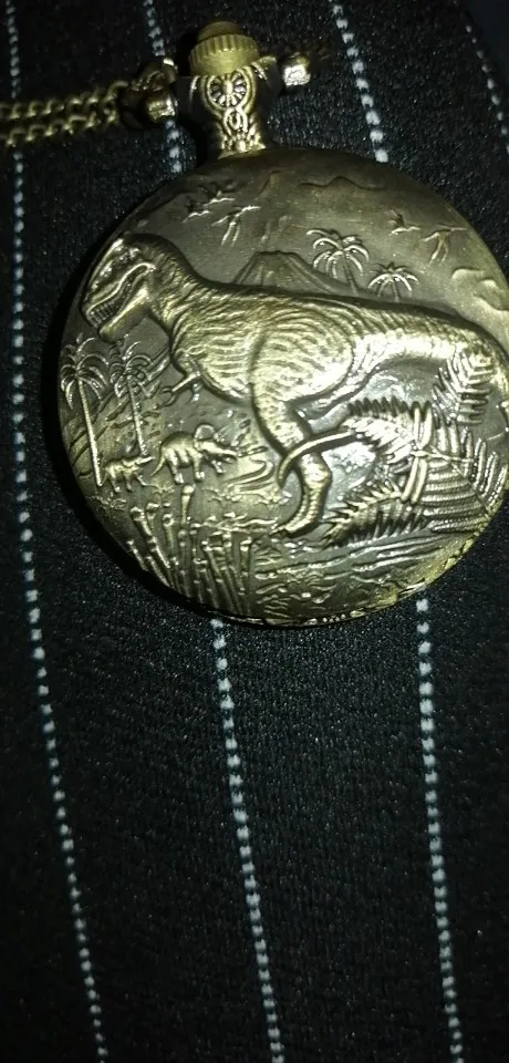 Jurassic World 3D Dinosaur Forest Quartz Pocket Watch Necklace Wild Protected Animals Dinosaur Necklace Pendant Souvenir Gifts