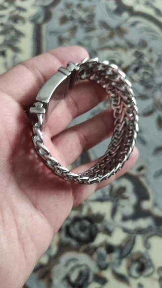 very nice braiclet of stainless steel. exactly the same as on the photo. I recieved it very fast. I will certenly order something again by this seller in the feature.