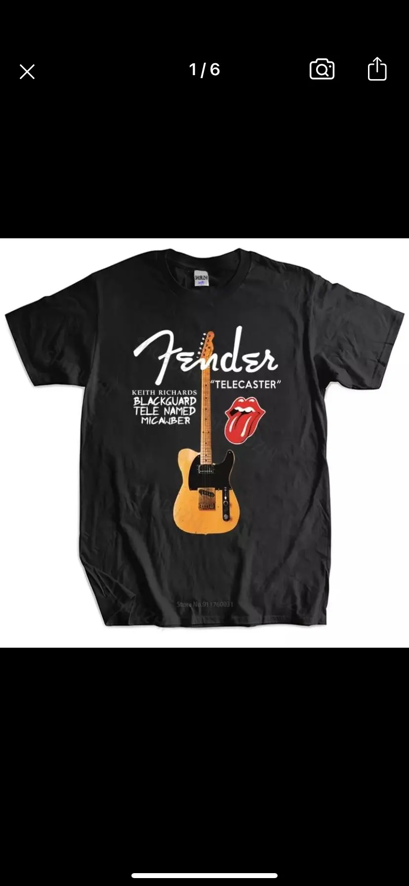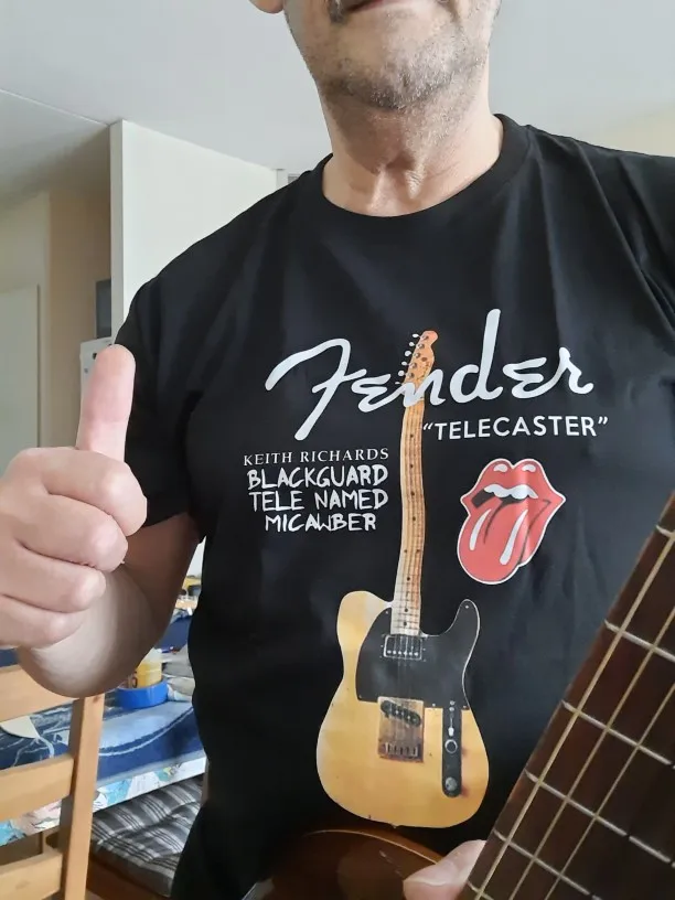 Keith Richards Guitar Black Guard Tele Micawber T-Shirt Men's Size: S-to-XXL sbz1311