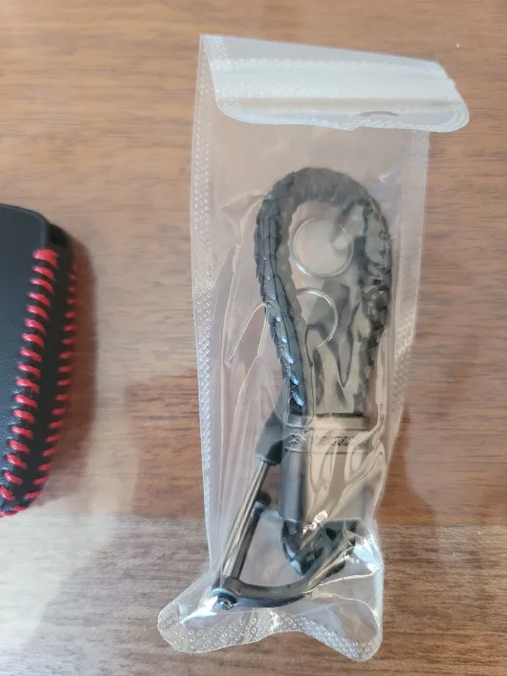 The leather case is great and does include the BMW logo as expected. The carabiner is not the same as the one in the product description page and does not have the BMW on it as expected. Instead it was logo of the keychain maker. Disappointing.