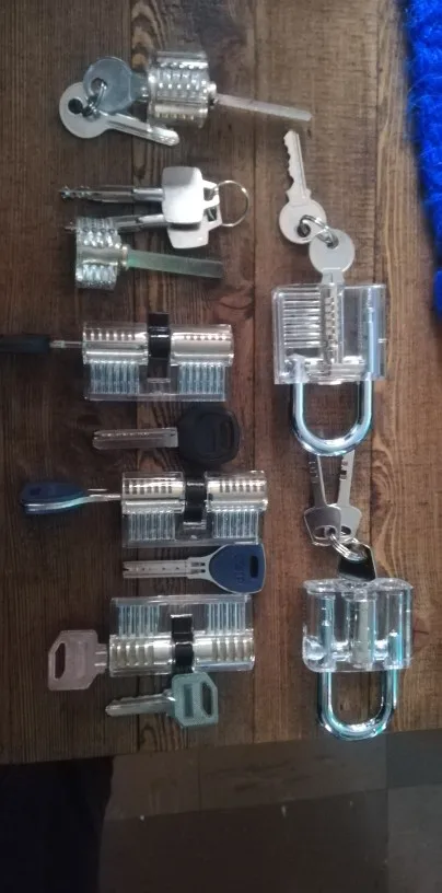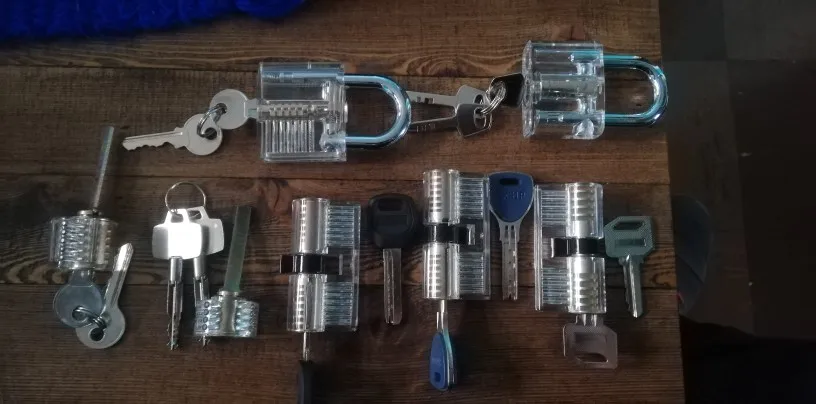 Very interesting different locks. one of the locks has a plastic core and is horrible quality. The three european style (double sided) ones do not use the same key on both sides so you actually get 3 extra locks for free, that makes up for the plastic one.
