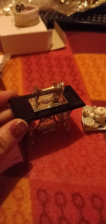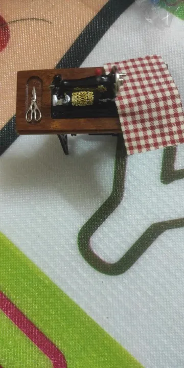 Kids Dollhouse Decor Miniature Furniture Wooden Sewing Machine with Thread Scissors Accessories for Dolls House Toys for Girls