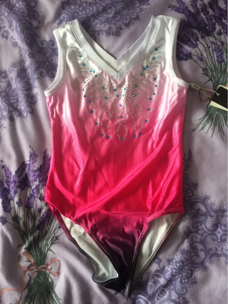 Kids Girls Sleeveless Shiny Rhinestone Ballet Dance Gymnastics Leotard One-Piece Swimsuit V Shaped Neck Kids Dance Wear