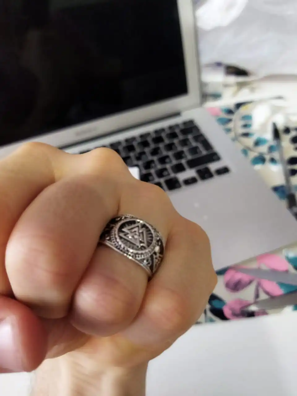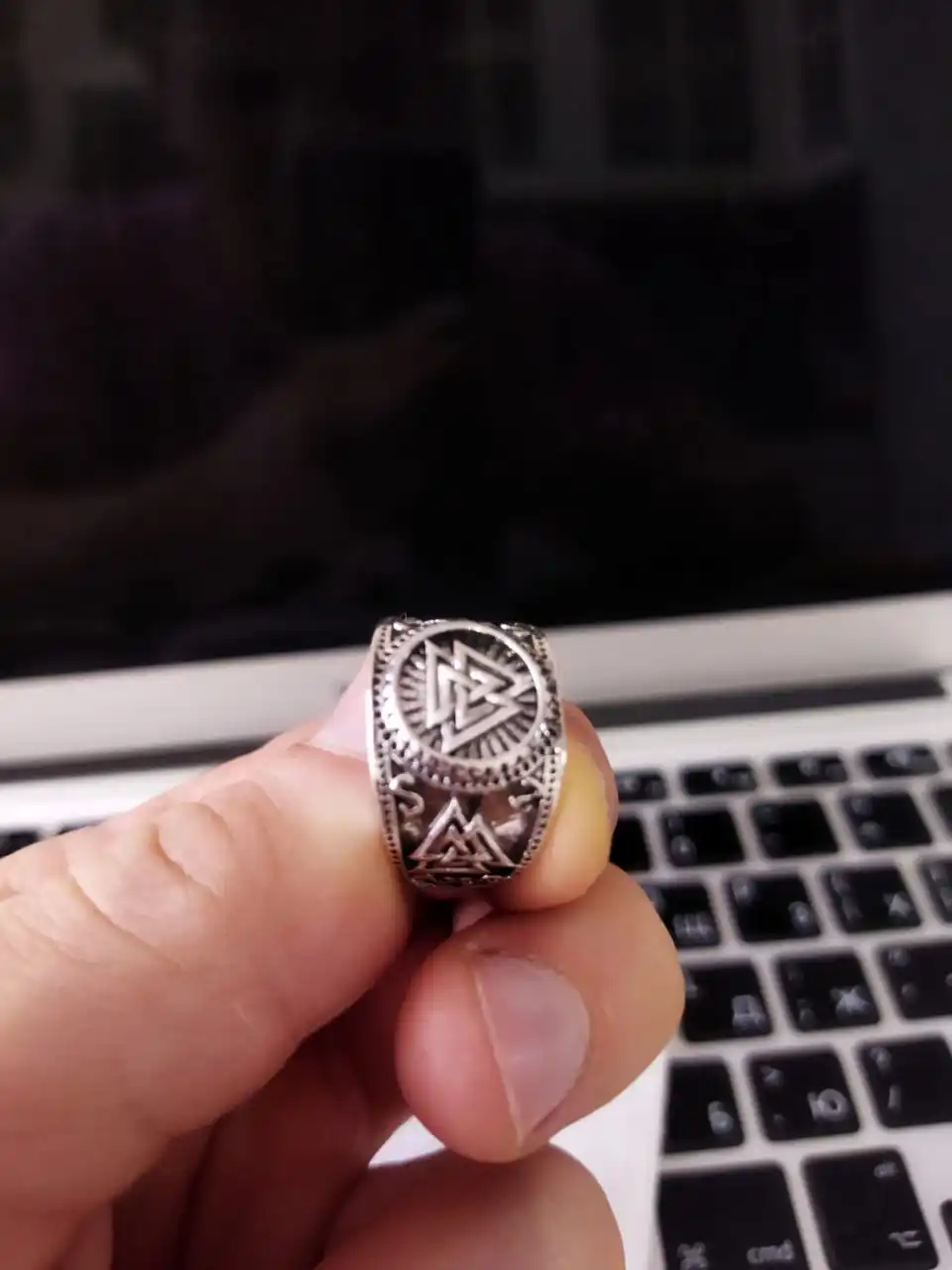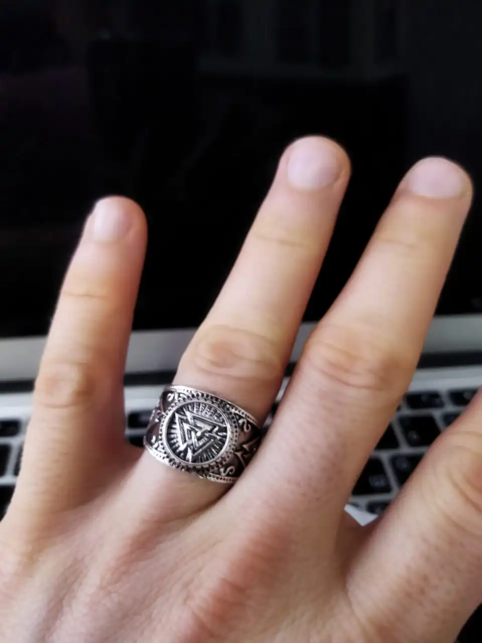 Kinitial Fashion Viking Runes Wide Ring Carved Knot Jewelry Geometric Knot Rings Cool Motor Biker Men Finger Ring Drop Shipping