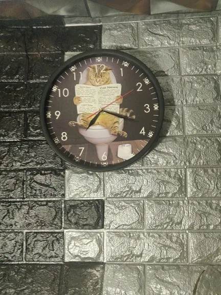 Kitten Cat on Toilet with Newspaper Bedroom Silent Wall Clock Funny Bathroom Wall Art Decorative Wall Watch Gift For Cat Owners