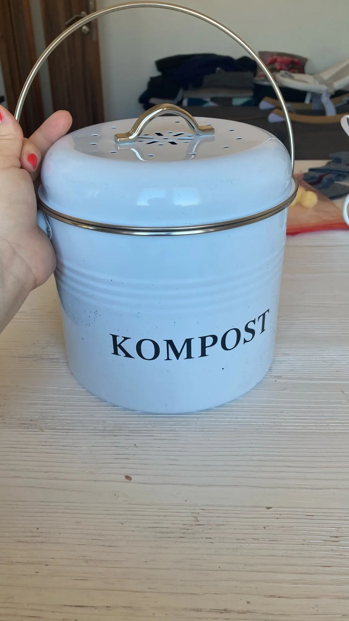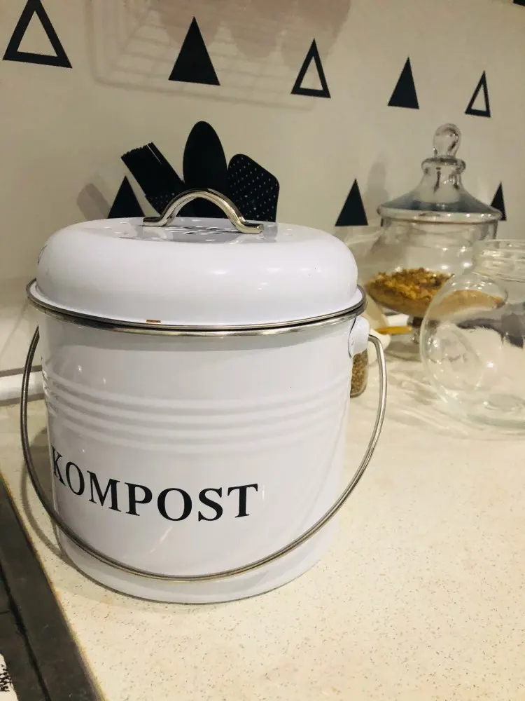KOMPOST Kitchen Compost Bin 5L Organic Melons Leaves Home Made Trash Can Round Iron Charcoal Filter Bucket Outdoor Accessories