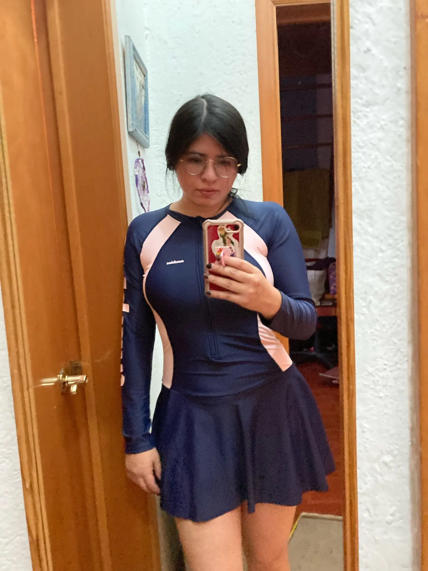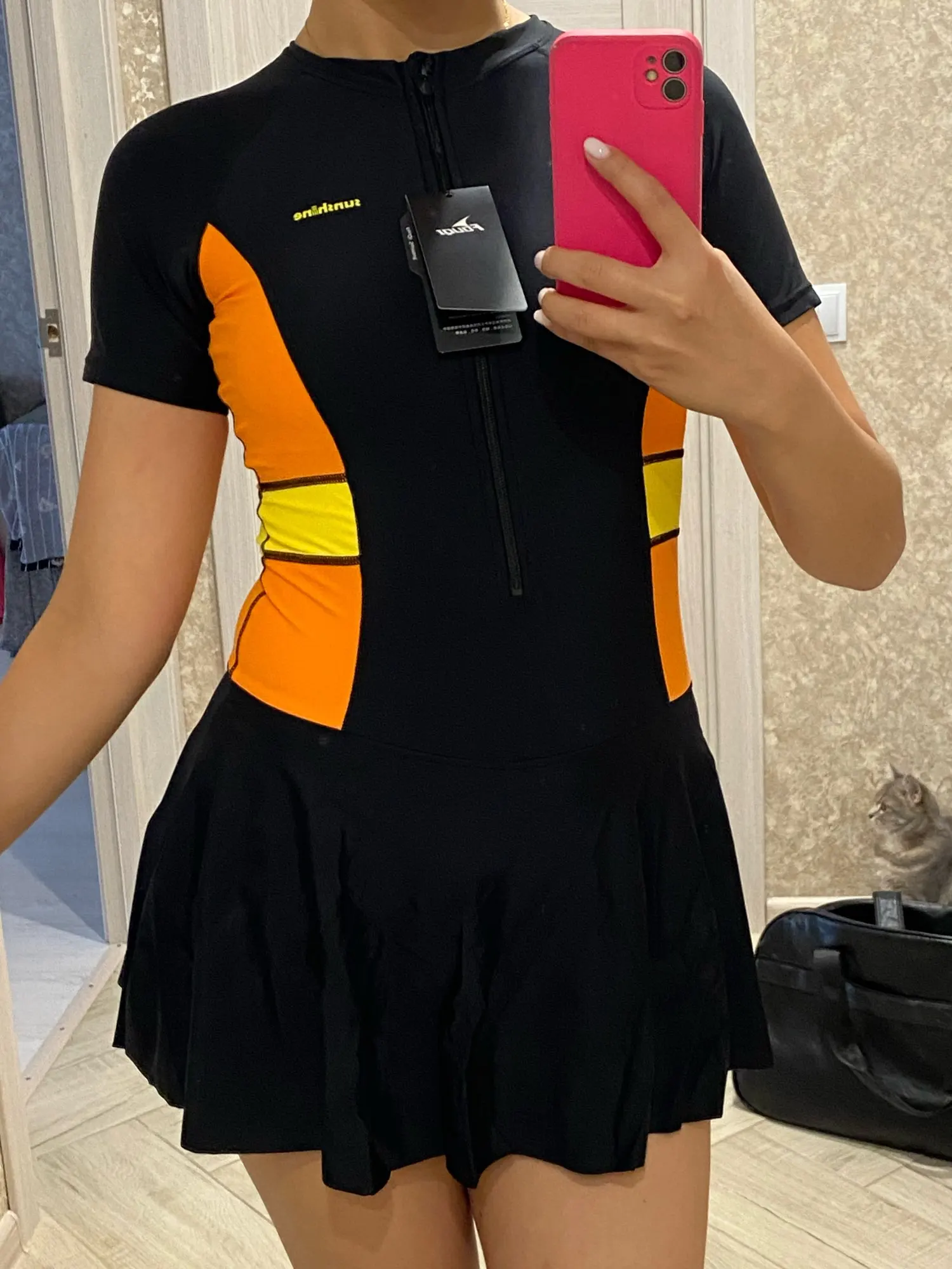Korean One Piece Swimsuit Women Sleeves High Cut Plus Size Zipper Rash Guard Short Pants Skirt Monokini Quick Drying Surfsuit